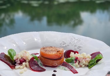 Maxime, Your Private Chef : "Maxime sources the finest seasonal ingredients from local markets in Dole and Dijon. His cuisine is a modern tribute to our regional heritage—think Bresse poultry, Charolais beef, and artisanal cheeses, all paired with hand-selected Burgundy wines."